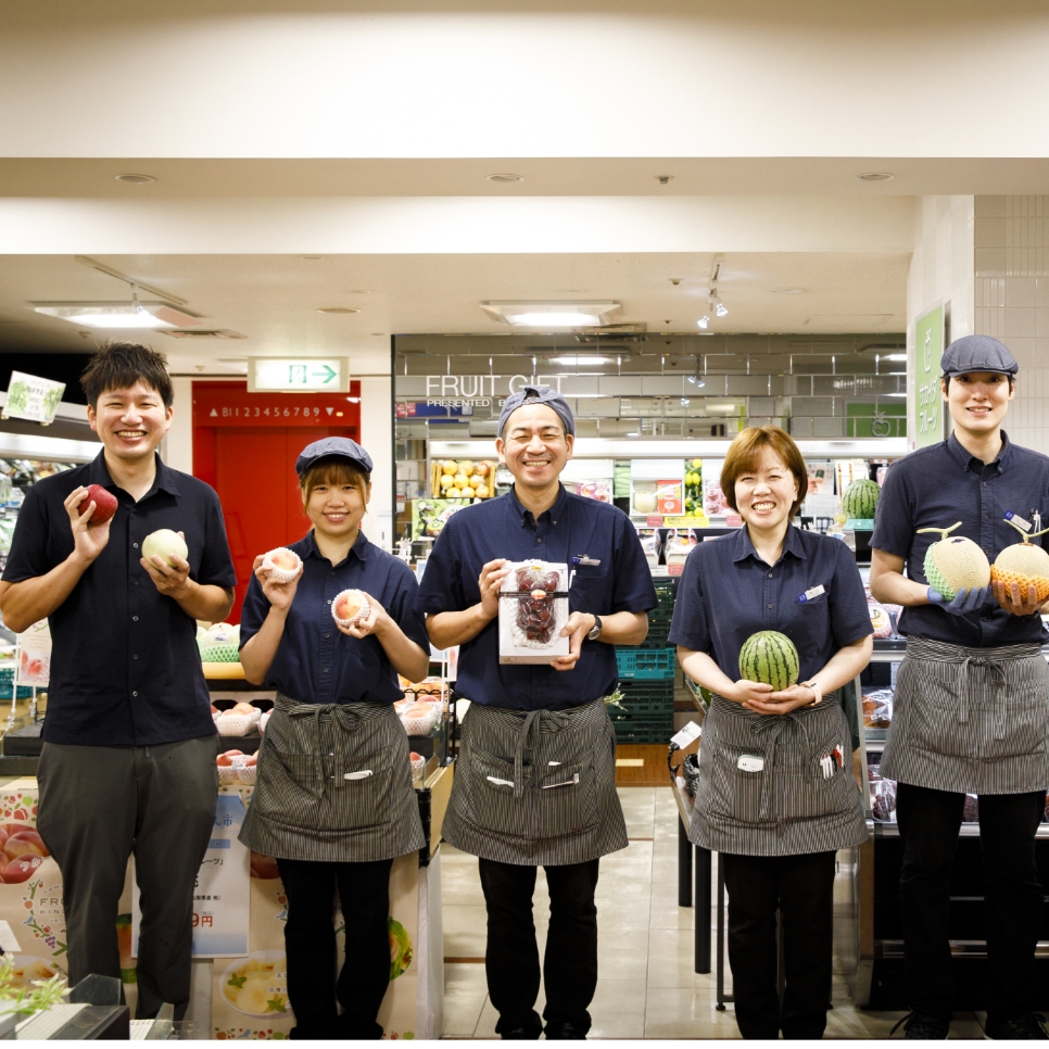 親切ていねいな接客をモットーに、バイヤー歴30年以上のスタッフが自慢の野菜果物を販売いたします。全国から厳選したフルーツギフトが一番の強み。