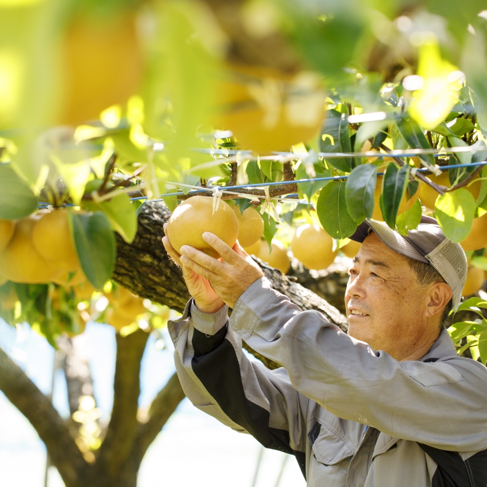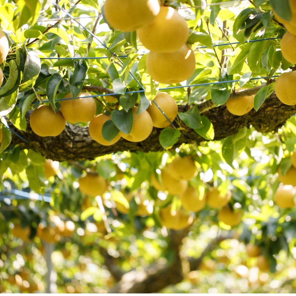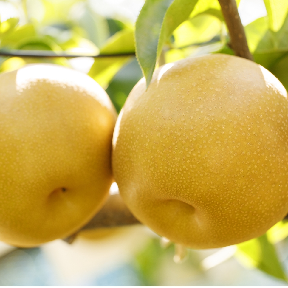 1本の木に実らせる果実を、一般の梨の6割程度に制限し、1つあたりの養分を増やすことにより、甘くて大きな梨に仕上げたのが、この加賀しずくです。出荷量は少量なので、限定での販売。