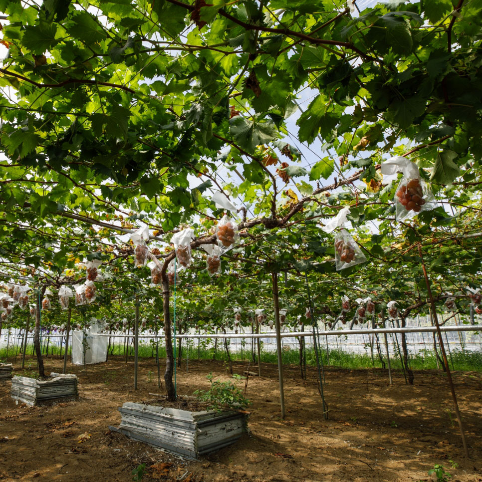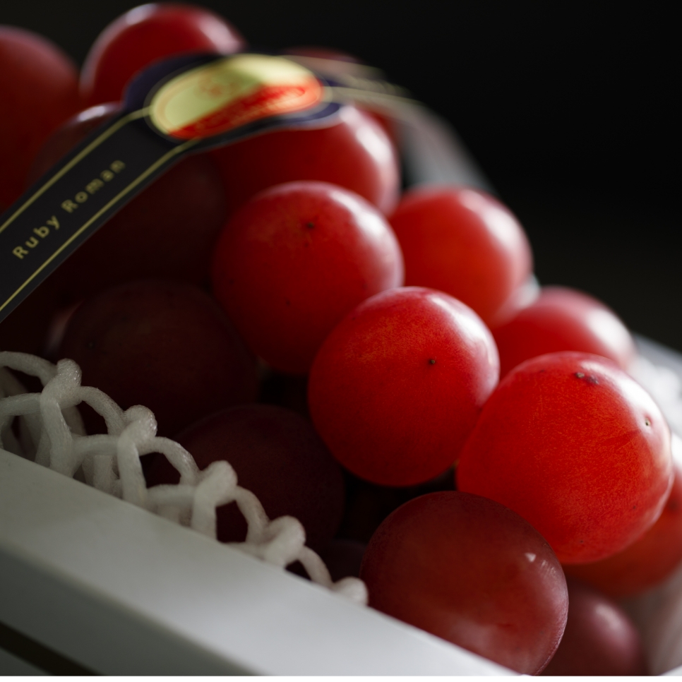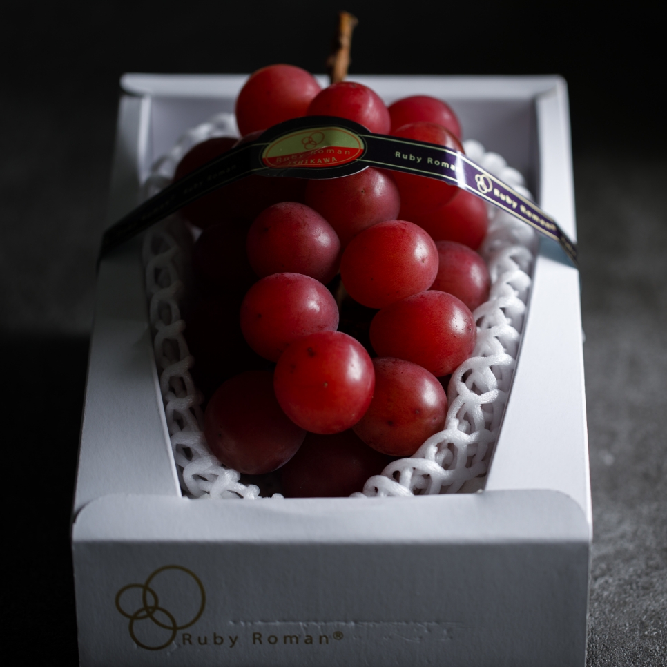 初競りでは1房100万円以上の値がつけられて取引されることもある石川を代表する高級ぶどう品種。厳しい検査基準をクリアしたものだけがつけられるルビーロマンブランド。