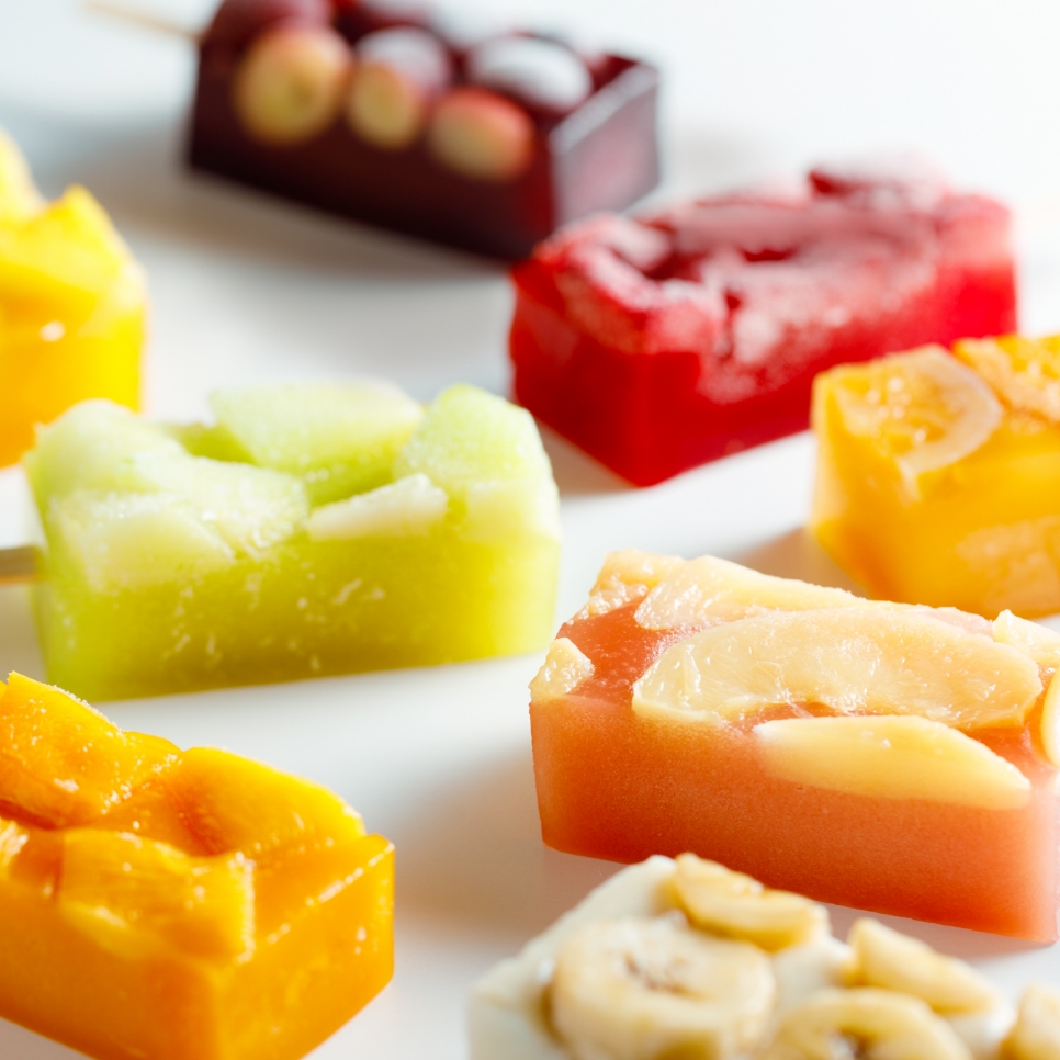 ゼリーとアイスが出会ったら、ずるすぎる食感が生まれました。果物屋さんの季節のフルーツを贅沢に使用した、ひんやり甘いゼリーアイスです。