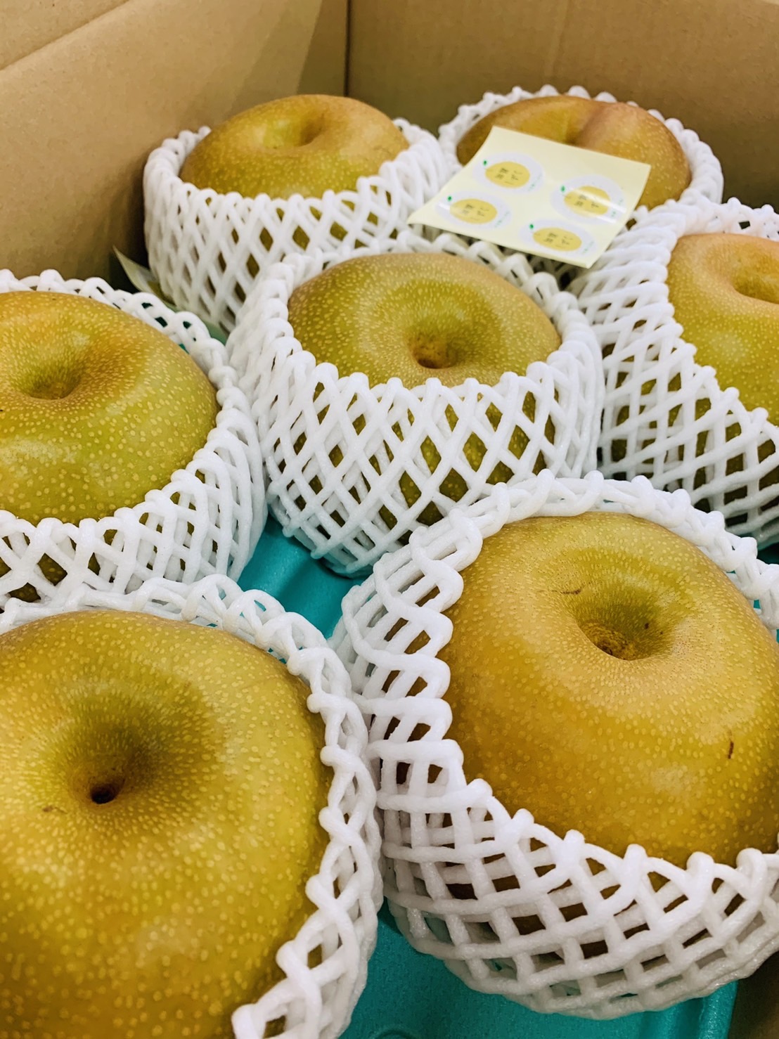 1本の木に実らせる果実を、一般の梨の6割程度に制限し、1つあたりの養分を増やすことにより、甘くて大きな梨に仕上げたのが、この加賀しずくです。