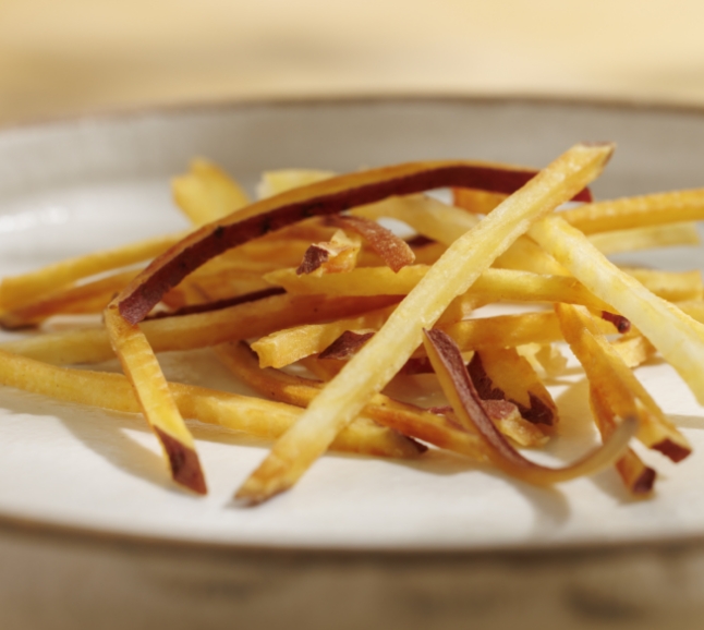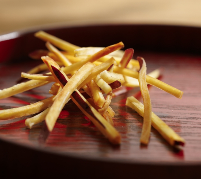 芋けんぴは芋が主役の揚げ菓子です。だからこそ、芋が命。八百屋が本業である我々が厳選した、石川県産の新鮮な五郎島金時だけを贅沢に使用しています。