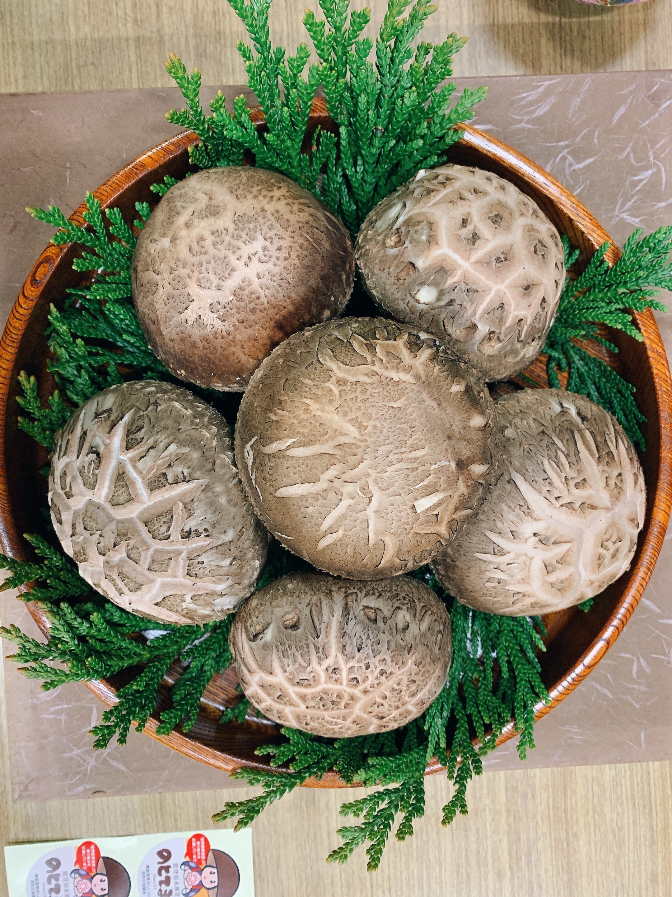 奥能登で多く栽培されている原木しいたけは、能登の気候風土に適して大きく育ち「のと115」の名で出荷されていますが、その中でも、傘8cm以上、肉厚3cm、巻き込み1cm以上という規格を満たしたものを「のとてまり」としてブランド化。のとてまりは「山のアワビ」とも呼ばれています。